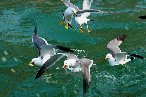 海鷗實在好多啊~牠們會不會直接啄人手上的東西?